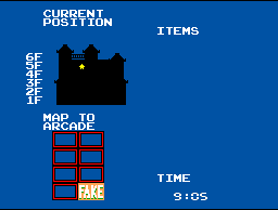 Although there are no enemies in the castle, per say, there are a number of incredibly stupid ways to end the game. If you try on a cool looking piece of armor, you’ll become immobilized and lose. One map piece you find is burnt – if you grab it without first spraying on some “restorer powder“, it’ll crumble and, again, the game will end. There’s one particular set of stairs that looks innocuous, but if you walk down you quickly discover that it’s broken, so you’ll fall and, once again, game over. Although there are passwords, they only save progress between the four major areas, so if you perish in the first castle segment – by far the longest part of the game – you need to restart the whole thing.