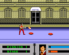 The SMS version plays very differently from the others. It’s more slowly paced, enemies are killed in one hit and characters can no longer combo attacks, so it doesn’t feel very much like a beat-em-up anymore. You also only have a single life, with three credits, and continuing sends you back to the beginning of the scene. There are also only five levels in total, there is no multiplayer and Karla/Karen is completely gone. Gordon’s super attack has been changed into a nuclear missile, which is actually cooler than his old one. Overall, the port is not fantastic, though for what it’s worth, it’s a huge step above the SMS port of Golden Axe.