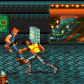 Most disappointing is merely the wasted potential. Each of your characters has several weapons, including grenades and bazookas, but cannot be used individually. Instead, they’re just part of pre-canned combo animations. Your guns only shoot projectiles in the auto-run segments, for example, and the grenades are only used to dispose of enemies lying on the ground. The moveset isn’t that much smaller than other similar games of the era, it just hammers home the feeling that it’s little more than a sprite swap on the Golden Axe template, instead of using its setting to try anything new or markedly different.