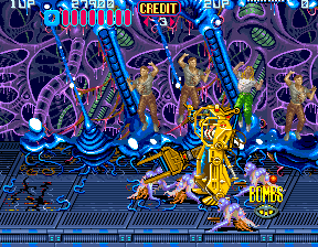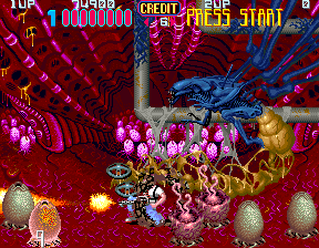 There are actually two different versions of Aliens. The Japanese version (probably the initial release) is lacking the APC stages, as well as Newt. The game in general is a bit easier, with enemies taking fewer hits, and power-ups are much more frequent. There are a few new minor enemies, and some of the other ones appear at different points. The final battle is actually harder, with the Alien Queen having an attack that sends out multiple images of herself, as opposed to the acid spit in the other version.