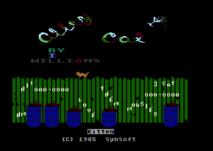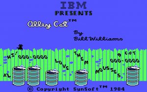 The American computer classic Alley Cat was initially born as a one-screen prototype made by John Harris, an Atari programmer working at Sierra On-Line. An influential figure at the time, he best known for his work on the successful hit Jawbreaker (Atari PC / Atari 2600 / IBM PC / Commodore 64) and Atari port of Frogger. He was not pleased with the work-in-progress and handed it over to Bill Williams, a programmer friend from Synapse Software, previously known for his Atari computer games Salmon Run and Necromancer (which also got a Commodore 64 release) and then later for Mind Walker (Amiga 1000 exclusive) and Sinbad and the Throne of the Falcon (a multi-platform game which became one of the Cinemaware early hits).