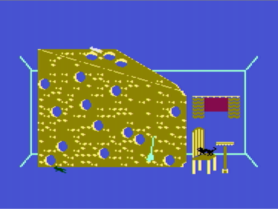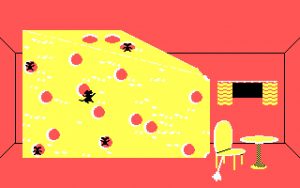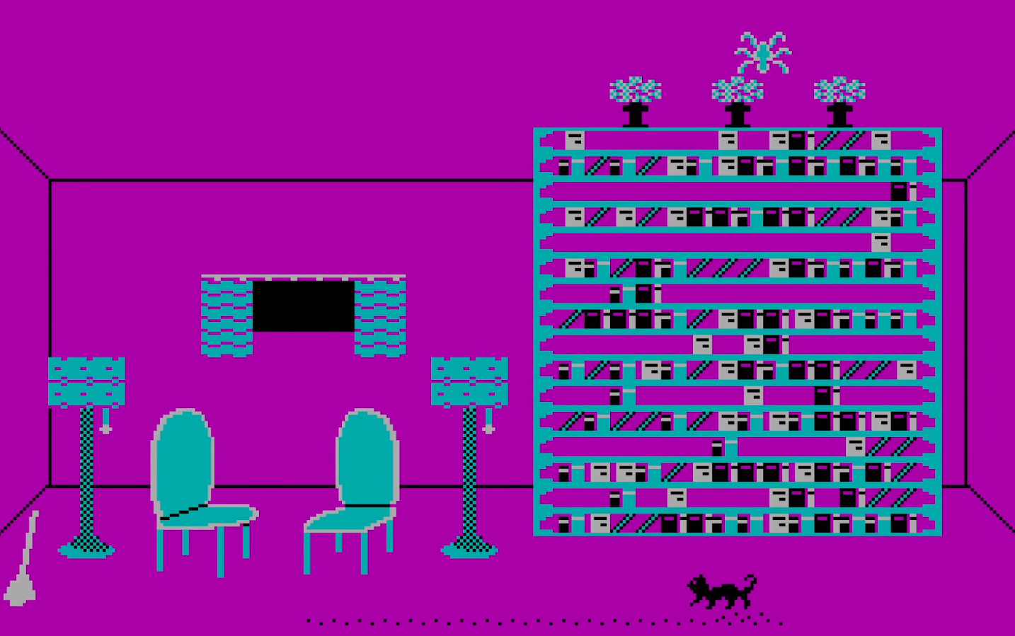 Harris significantly changed the original while working on it and then Synapse Software released the result for Atari PCs in 1983 and IBM PCs in 1984. In the game, you play as a sneaky cat named “Freddy” and your main objective is to reach your feline love interest, Felicia. The ultimate goal is to scale a building, but you jump into various windows to begin a minigame, mostly ones where you cause various types of mischief, as cats like to do. Although it should be noted that the occupants themselves are no better, practicing all kinds of haphazard bizarre things. It seems to be a quite troubled neighborhood overall.