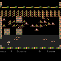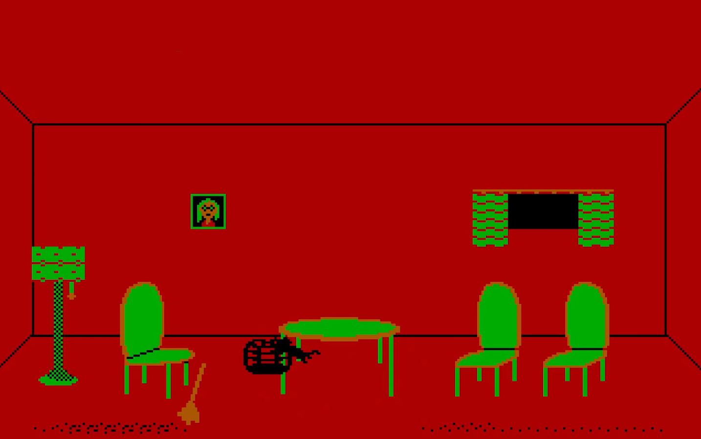 The Atari 800 original has the best graphics. The PC Booter version is stuck with CGA visuals while the PC Jr. version has better colors. Plus the main menu no longer looks way too black like in the Atari version. Otherwise the differences between them are minor, most being graphics-related. Take the final screen, for example – the cherubs are animated and now shoot at you from the top of the screen plus Felicia finally has a different color and we learn that she is a snow white beauty. However, there is a bug where an enemy dog doesn’t hurt you when a broomstick viciously attacks you. This allows for an easy completion of the level with a birdcage, if you get all things right to set in a loop.
