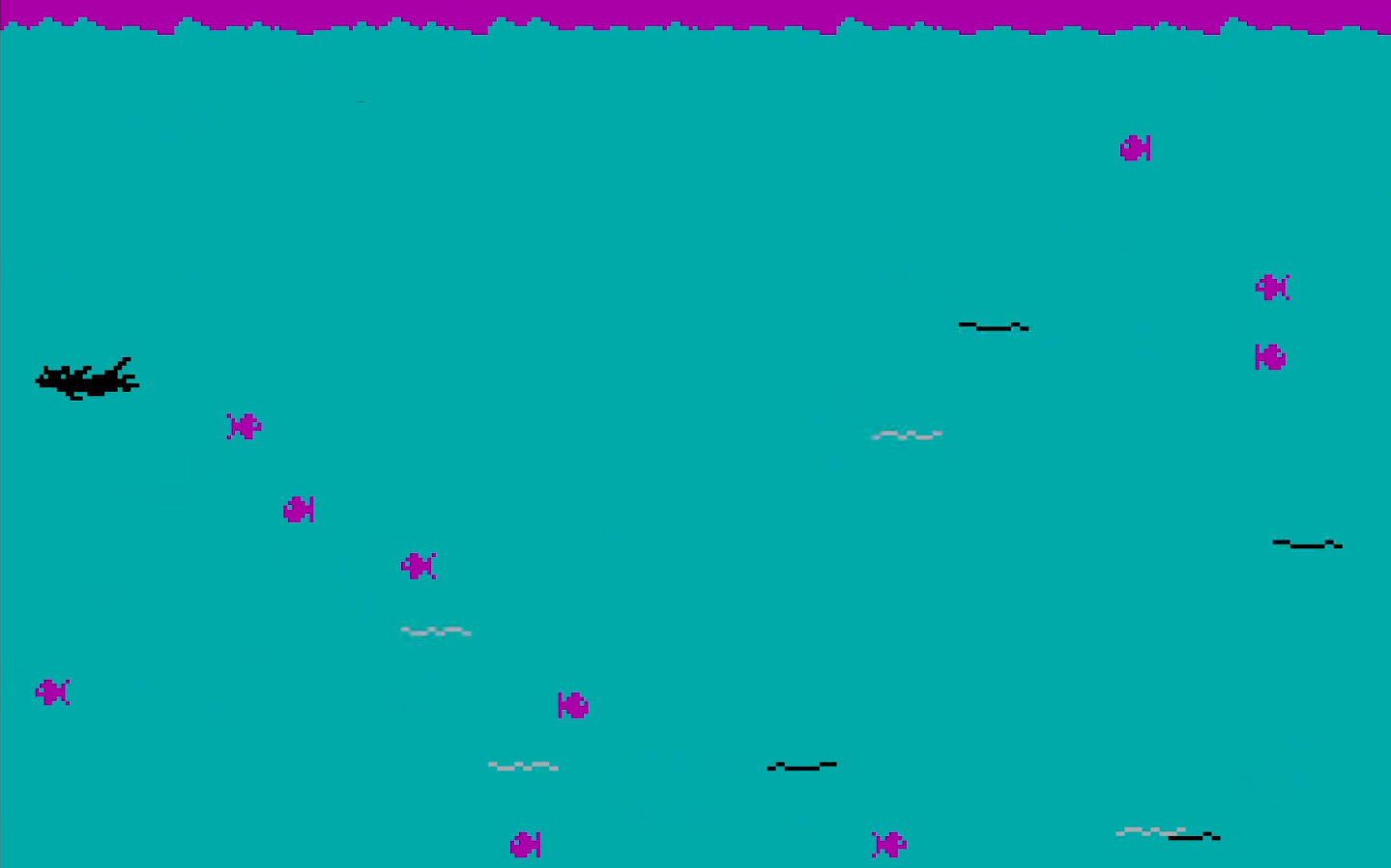 And finally, there’s a room with a giant fishbowl, being guarded by the already familiar cleaning-obsessed living broomstick. Your task is to eat all the fishes while dodging the electric eels, who are also happen to live there. Aside from the obvious danger of being electrocuted, you also need to come up for a breathe of fresh air so you don’t drown (the cat becomes pink when it needs it).