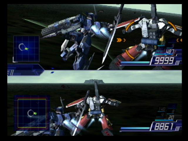 The new much-talked about feature in ACE3 is the inclusion of vocals in the soundtrack. Before launching into a mission, you can switch between vocal or instrumental versions of your chosen mech’s BGM. This combined with the impressive opening songs of the game’s line-up give ACE3 the best soundtrack in the series, and the feature was so popular they re-released ACE2 with vocal tracks, as mentioned earlier.