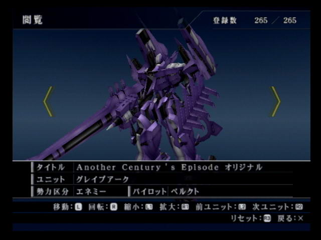 The new original mecha. A general-purpose type with standard armaments as well as missiles and a grappling hook. As the game progresses, several specialized forms become available for it, making it even more broken than the Gun Ark.