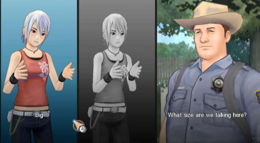 Another thing that helps keep the conversations interesting is that you can actually choose some of Ashley’s responses this time around. Occasionally, you’ll be presented with a couple of options as to how you want to react or what you want to say to someone. Usually, the dialogue will only vary slightly, and events will unfold in largely the same way. There are a few instances in which your responses can genuinely affect events in the game, however. Early on, when you encounter a park ranger and explain that your bag was stolen upon your arrival, you have the opportunity to choose what size Ashley will tell him the bag was. Choose the correct size, and the ranger will return your bag to you partway through the game with the majority of your belongings intact. If you lie or simply don’t remember the correct size of her bag, however, he will deliver some unrecognizable bag to you later in the game, and your belongings will remain lost to the annals of time. The tenor of Ashley’s conversations with other characters can also be altered in minor ways depending on how you treat them, or in, some cases, how your responses affect their treatment of you. This is a far cry from the complexity of Mass Effect’s dialogue trees, but still a welcome bit of interactivity. On the flip side, during the climax when Ashley is placed into the Another machine, you seem to be given some important decisions to make about Ashley’s future… but these decisions are false. This one tantalizing segment of the game turns out to be a disappointing case of “but thou must.”