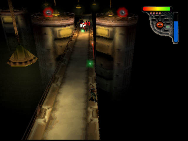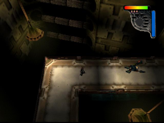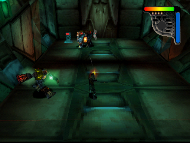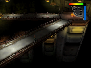 Apocalypse is a 3D top-down shooter, and fans of games like Smash TV or Total Carnage will feel right at home, as you moving with the left analog stick and shoot with the the right. In case you don’t have a Dual Shock controller, you move by pressing the directional pad and shoot in four directions by pressing Triangle, Circle, Cross, or Square. You cannot control the camera, which will turn on its own as you progress through (mostly linear levels), and at times you might be confused about where to go next. The shoulder buttons are used for jumping and crouching, and for changing weapons. There are some platforming sections, which generally aren’t too hard, but they can occasionally be unnecessarily difficult due to the camera angles.