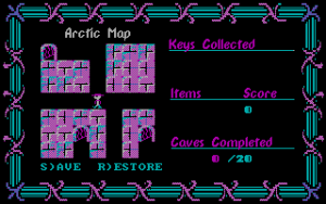 While Arctic Adventure could be more described as an expansion pack to Pharoah, there are a few new features which make it a little less frustrating to play. There’s now a map screen where you can select the level you wish to play if one proves too challenging. Some routes are blocked off at first, and need keys to unlock them, however. The other change, even more of an improvement than the map screen, is that you now have unlimited lives. Since the amount of cheap deaths, either due to the controls or the traps are unchanged, this helps quite a bit.