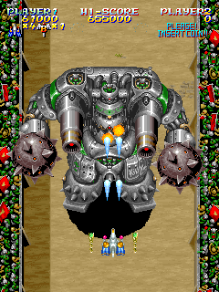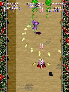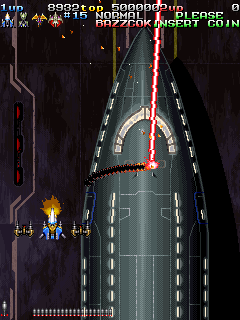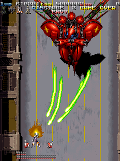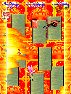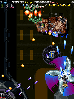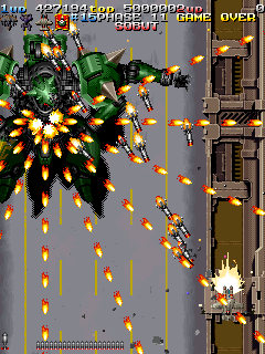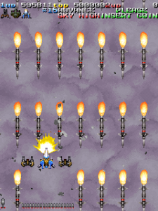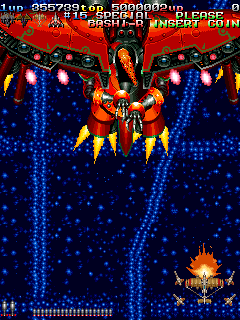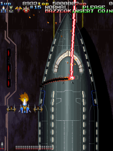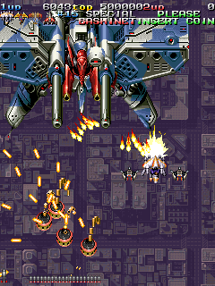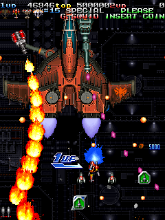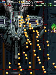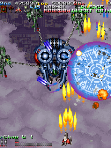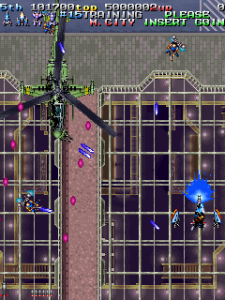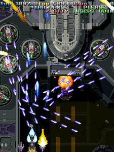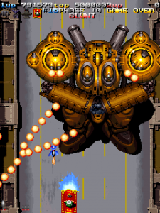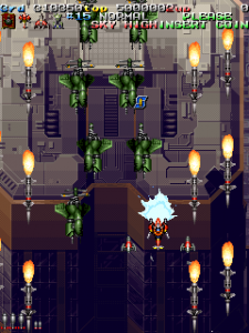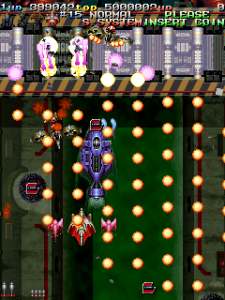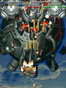 The scoring system from Battle Garegga is back too. Chaining medals to make them larger is a bit easier here, partially due to how there are more enemies. One humorous aspect was added – if you miss collecting the largest medal, the announcer will shout “No!” It makes screwing up a bit less of a downer because it sounds so ridiculous.