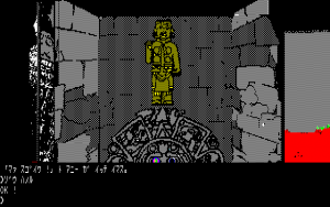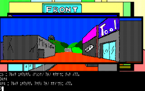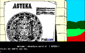 While Falcom is typically known for RPGs, in their earlier days they produced games in a few different genres. In the early 80s, they published games like Horror House, Monster House, and Demon’s Ring, first person graphic text adventures similar to the types that were spearheaded by Western publishers like Online Systems (Wizard and the Princess) and Penguin Software (The Quest). In 1984, they published another one, Asteka. (“Asteka” is the Japanese word for the Aztec civilization.) The subtitle in game reads Maya Densetsu no Nazo (“Mysterious Legend of the Mayans”), which is a bit odd considering that the Aztec and Mayans were different people. The game puts you in the role of an explorer searching for treasure in South American ruins. The game begins in the local town, as you get supplies, before moving on to the ruins themselves.