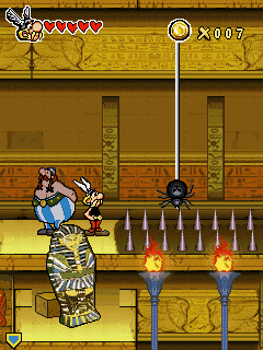 Returning to the world of cell phone gaming in 2009, it was now French developer and premier cell phone game company Gameloft who was tasked to make Astérix portable. Going back to a tried and true classic, the game is a platformer based on Astérix et Cléopâtre.