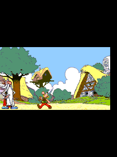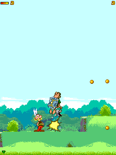 The game is a simple platformer using the graphics from Astérix & Obélix on the SNES and goes through the Gaulish forests, bashing Romans and picking up treasures. Across the levels you will find gold coins, Roman helmets and coin bags. Picking up all these will give you a 1-up at the end of the level which is reached when you find Idéfix. Hearts can be picked up for energy refills and Astérix heads for 1-ups. There are also bottles of magic potions around that will make you invincible.