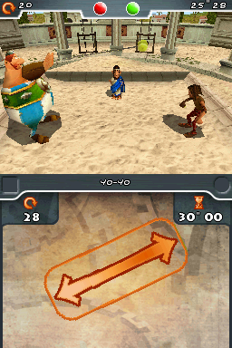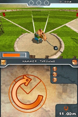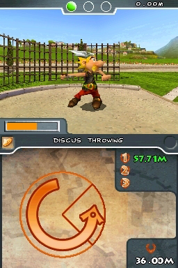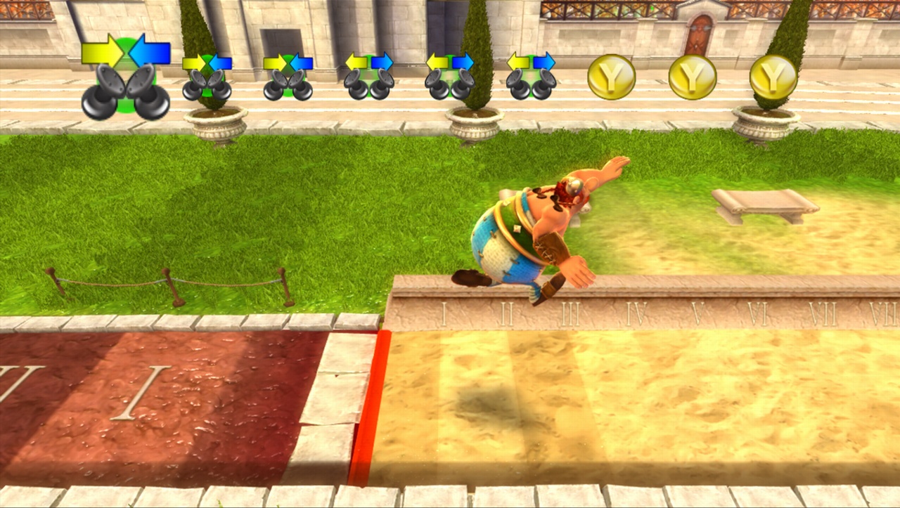 The new Olympic games sections don't add that much to the overall experience. These games range the gamut from Javelin, Long Jump, Running and the likes. They are controlled with the Wiimote and nunchuk by essentially waggling around either up or down, or left to right for a few seconds before seeing the outcome. Once you've participated in a few of these events, they start to feel very dull and control much the same of each other. The events are still sprinkled with some good Astérix style humor to keep things more in tune with the product, but it usually falls flat and becomes an annoying distraction rather than humorous twist. The rest of the game also makes use of the Wiimote to perform some moves, with the most interesting being the grab function with allows you to whip Romans around.