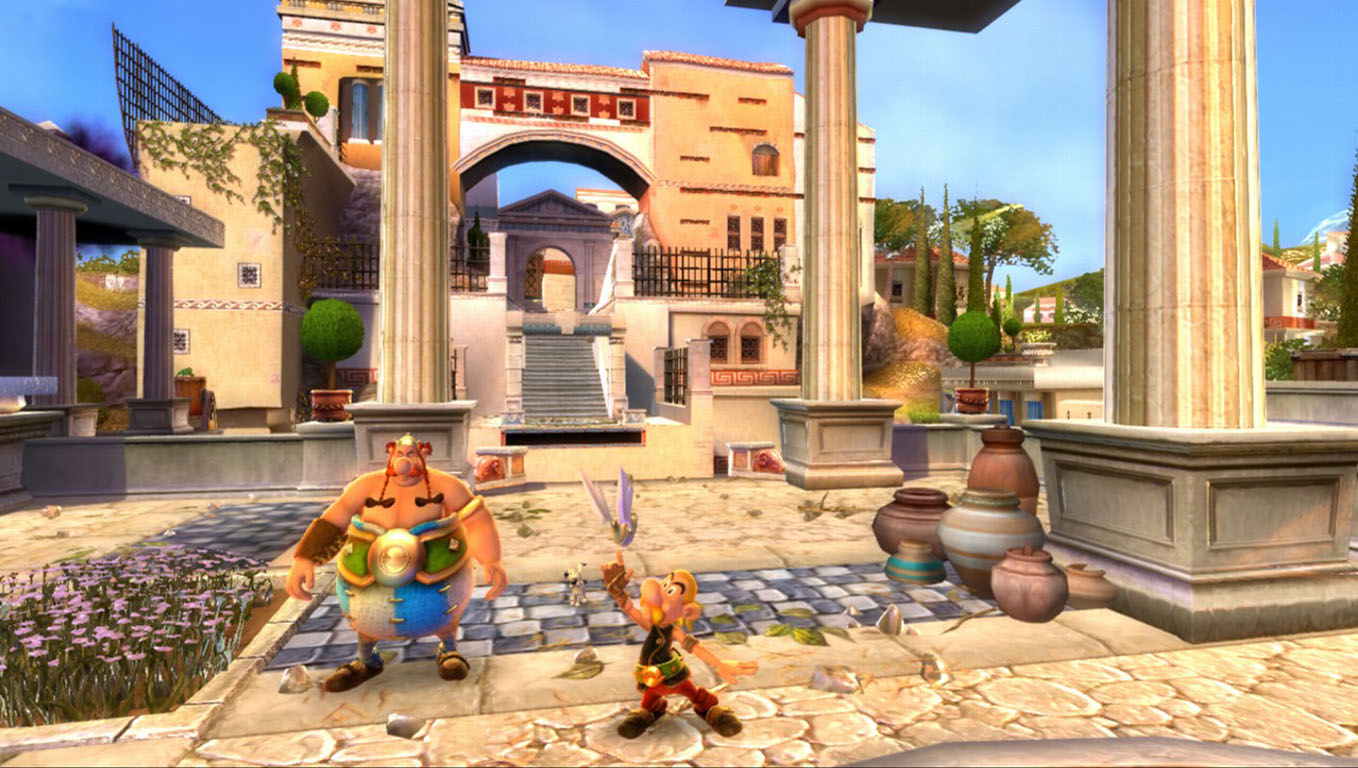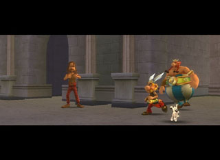 One really has to put emphasis on the word "partially" when talking about the story in relation to this game because it barely makes any use of it. While the Olympic games are definitely the setting for the game, the overall storyline is brushed under the rug almost as if étranges Libellules had no interest of actually doing a movie tie-in but because of timing and business decisions, and were forced to comply with the demands. This results in so many questionable events that never make much sense at all. Basically an evil wizard has given a inter-dimensional key that allows him to traverse into all parallel worlds. The result of this is that all the different versions of Astérix (comics, live action, video games) gather together in the game world. It's a similar plot that was used in 2009's Turtles Forever movie. The game uses the XXL engine and similar art style for its characters and locations, but during certain scenes the actors from the live action movie will pop up alongside the cartoon versions of the famous duo. But this crossover is so poorly done and makes no change to the game itself, being completely unnecessary, and is just an excuse to get the actors into the game to tie in with the movie.