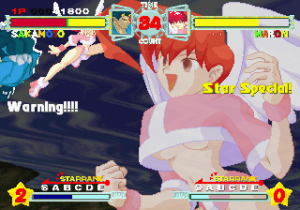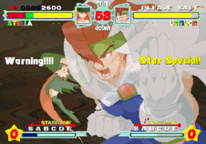 The controls are fairly simple – each of the six buttons on the Saturn pad executes a different move. Technically, there are no special moves, so there are no real controller inputs, although many of the regular attacks are still pretty powerful. There are a few special attacks that drain the star meter – pressing A and X simultaneously will temporarily increase your power, B and Y will execute one of your character’s super moves, and C and Z will execute the other. Other than all of the dashing moves, this is pretty much all you need to know to play Astra Superstars. Combos are easy to pull off for most characters, and many of the stronger attacks will sending them flying upward or downward. You can then chase them to continue the combo, similar to the Air Combos found in Capcom’s Marvel Vs. series. It’s pretty button-mashy, but it’s a lot of fun.