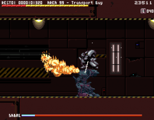 To balance things out, the game hosts a collection of upgrades that adds additional bars to your health meter, as well as a selective type of sub-weapons casted from your Cells. Many of these (Counter Barrier, Plasma Shocker, Unit Bomb, Smasher) are short-ranged secondary firearms, but others serve more peculiar purpose, like Repair, which replenishes your health, or Throw Cell, which spawns one of the Cells in front of you (combined with Double Smash, this can be a game-breaker with trained hands). There’s also Wing, which calls a robot hawk that homes to nearby target a la Mega Man 5‘s Beat.