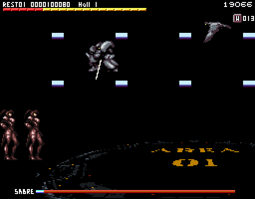 Astrocounter of Crescents is a single-plane beat-em-up with a total of nine stages, each again broken down to several sections. Bulgidung relies on melee combat, using one attack button (Ctrl) for your sabre, one for your sub-weapon (Alt), and the direction keys for movement, of which jumping is done by pressing up. For a game that came out in 1996, the game has surprisingly arcade-y design, having no RPG elements or other gimmicks to pad out the action. The levels themselves rarely deviate from a linear path filled with various foes.