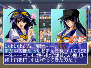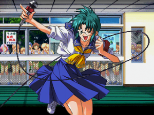 The fighting game boom started by Street Fighter II in 1991 produced almost untold amounts of similar games, many struggling to stand out. Fill-In Cafe’s Asuka 120% Burning Fest series’ distinguishes itself by featuring a roster almost entirely made of high school girls. The heroine, Asuka, is a star chemistry student, but the rest of the roster includes a rhythmic gymnast, a cheerleader, tennis, volleyball and softball players, and even a representative from the school newspaper. Beyond their club representations, each have brightly colored, wild hair styles, very much a mark of mid-90s anime. The character designs were provided by Aoi Nanase, an artist later known for manga/anime Seraphim Call.
