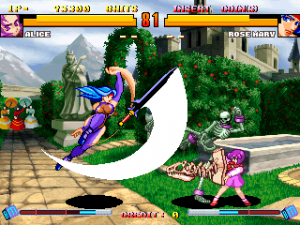 Many of the returning characters play nothing like they did in Asura Blade, with only Yashou, Rose Mary, and Zam-B being mostly the same from one installment to the next. This is mostly due to balance reasons, as Goat was severely overpowered in the first game. Taros was changed for no discernible reason, but is still very fun to play. Alice was changed to reflect that she had learned more magic than necromancy and can now control dinosaur bones and has obtained The Necronomicon. Classic Alice is playable through a code.