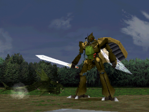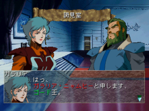 On its own, this is all bog standard SRPG stuff, dragged down by dreadfully long battles, but it sets itself apart with its branching storyline. You can take the Law route, following the same path as Shou did in the anime, defecting to join with Marvel Frozen, Nie Given, and other rebels to fight against Drake, and you can follow it through the same downer ending as the TV series. Alternatively, you can take the Chaos route and join with Drake’s army to take a whole different route through the story. Altogether, there are fifteen endings. You can also decide the fates of many of the cast members of the show – even Tokamak Robsky, an extremely minor character who was killed in the first episode, can be saved and drafted onto your crew. There’s a path where Sho turns evil. You can also get some of the Aura Battlers from the sequel OVA, plus some that weren’t in either anime series. As such, it’s a must play for fans of the anime, just to see the different ways that you can change the story. It also features FMV of the original TV opening and ending sequences, plus a brand new CGI cinema.
