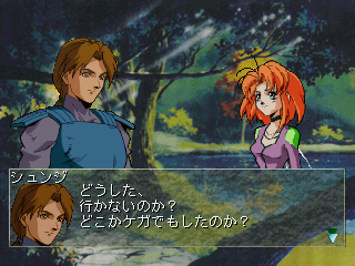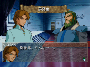 The original anime starred a Japanese teenager named Shou Zama, who was initially drafted by the evil lord Drake Luft, before betraying him and fighting for the rebels. This PlayStation game instead places you in the role of an original character who you can name (with the default name Shunji), who is summoned before Sho and ends up allied with the nation of Li.