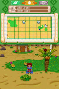 All of the action takes place inside the Shuffle Dungeons, using an overhead perspective with 2D graphics similar to The Legend of Zelda. Dungeons are divided between the top and bottom screens of the DS, and the screens will take turns changing in structure every so often (typically between 3-10 seconds). The objective is to find your way to the next floor while also making sure you don’t get caught on a screen as it shuffles. Once you’ve made it to the end of a dungeon (they’re up to five floors long), there may sometimes be a boss for you to fight, but there will typically be a villager for you to rescue. That’s not all though, as the player will then have to work their way back up the dungeon with the villager accompanying them.