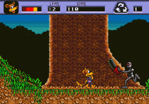 Awesome Possum was Tengen’s entry in the then burgeoning bandwagon of mascot platform games that really, really wanted to be Sonic the Hedgehog. He’s a sarcastic, tracksuit wearing possum with a strangely tacked-on environmentalist slant. As a character, he feels a lot more fleshed out than most of his mascot brethren, thanks largely to the massive (by 1993 standards) amount of speech samples available in the game. He’d complain when hit, brag when killing an enemy, announce when getting a 1-up, chastise the player for not moving, and repeatedly point out how cool he is. His personality wasn’t much to write home about, but at least he had a personality, which was more than you could say about the likes of Rocky Rodent or Zero the Kamikaze Squirrel.