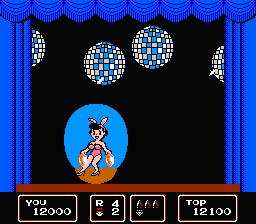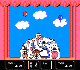 The graphics are nicely done and fit well with the sideshow theme of the game. The character and animations are well detailed and made excellent use of the hardware capabilities of the NES. The game features enough variety to keep things compelling enough to keep playing, so long as you don’t get frustrated with the more challenging gameplay aspects. The Trixie’s Shot mini-game is especially impressive with the spotlight that follows Trixie around on stage while disco balls shimmer to the music. Such design choices worked well for the game and gave it a unique personality- something Nintendo often excels at doing.