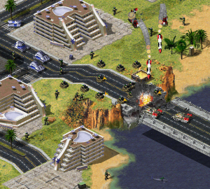 In the early days of the video game industry, Konami (using the name Leijac) published a Space Invaders clone called Space King. They revisited the concept several years later, this time with much more originality, with 1987’s Battlantis, a portmanteau of “battle” and “Atlantis”. Taking place in a medieval Europe-like setting in the year 777X, you control the warrior Klypeus the 3rd on top of a battlement, firing on groups of advancing enemies from below. The blocks on the edges, technically called “merlons”, act much like shields. When any enemy reaches the tower, it climbs up and kills you. The UFOs have now become little men pushing carts which yield power-ups when destroyed.