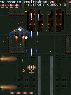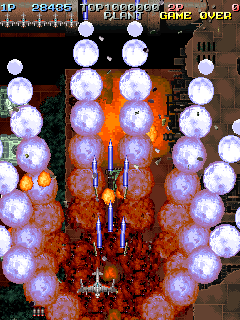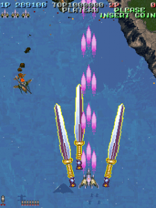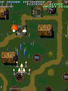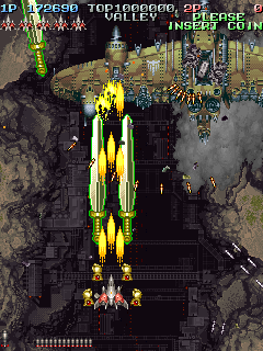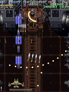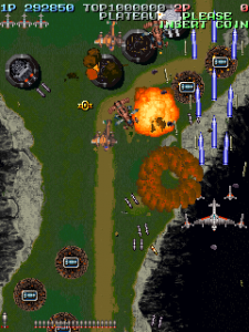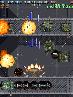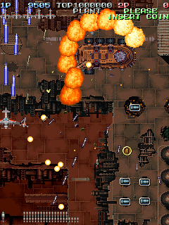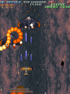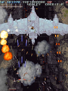The scoring system is fairly simple. Sometimes enemies will drop medals when defeated. The medals start off small, but as you collect them, they get bigger and are worth more points. If you miss a medal by letting it fall off screen, they revert back to being small again and thus resetting their point value. Picking up medals can increase your rank, so scoring can be pretty dangerous if you do not know what you are doing.