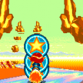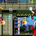 Not only does Daiginjou offer superior music, graphics, and controls, it also has nine levels compared to Trouble Shooter‘s six! Impressively, like in Trouble Shooter each level has a completely unique look along with some unique enemies. Highlights include a long battle against a huge demonic train and a factory level with a cool twisting background that concludes in a boss battle that wouldn’t be out of place in Gunstar Heroes or Contra: Hard Corps. In keeping with tradition, there’s also a knock against Nintendo (though this time more subtle) with the inclusion of yellow-caped enemies that look an awful lot like Mario in Super Mario World.