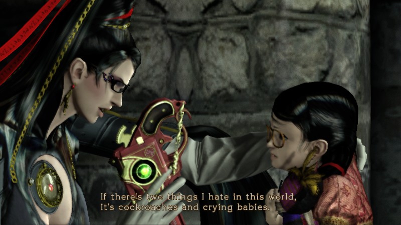 Bayonetta’s narrative premise has strong roots in Devil May Cry territory, with maybe a few roots reaching out to the anime/manga Hellsing. 500 years prior to the beginning of the story, there were two tribes who controlled the world for millennia: the Lumen Sages, who drew their power from the sun; and the Umbra Witches, who drew their power from moonlight. Although once allies, their long reign was brought down by a war, brought about by a child born between the two clans (thus violating years of sacred tradition); and witch hunts, waged by the humans who feared the clans’ powers after their war drove Europe into chaos. The modern day story, meanwhile, sees the eponymous heroine travelling to the secluded and highly religious town of Vigrid to track down hints about her past and the location of her clan’s treasure: two mysterious artifacts known as the Eyes of the World. Doing so requires navigating a complicated web of conspiracies, mysteries, and forbidden knowledge the player never sees in whole. The principle actors in this story include: