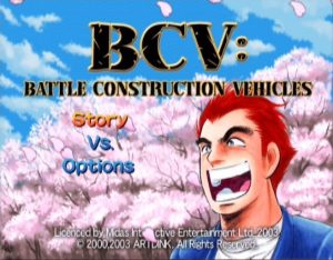 BCV, short for Battle Construction Vehicles, and known as Kensetsu Juuki Kenka Battle: Buchigire Kongou! in its native Japan, embraces that childhood desire for construction equipment to tear each other apart, bringing back that lost sense of childhood fantasy before your parents told you to shut the hell up. There’s an equally ridiculous plot behind all of this, wherein the main character tries to convince all of these skilled constructioneers to work for his company by beating them in duels, all rendered with the complex subtlety expected of a Shounen Jump comic. All of this wackiness makes sense when you realize that the game is developed by Artdink, the same funked up folks who gave you No One Can Stop Mr. Domino, amongst others, and was localized by Midas Interactive for Europe (and Europe only), who specialized in budget releases like this.