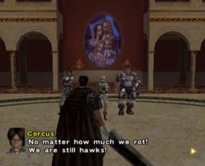 Taking place across volume 22 through volume 27 of the manga, the story covers the beginning of the Falcon of the Millennium Empire arc up to the point where Guts dons the Berserker Armor and fights Grunbeld. The story is faithful to the source material overall, with many lines and shots taken straight from the manga, though some cuts were made – any instances of sexual violence were removed (likely to avoid anything worse than its CERO-18 rating), anything relating to Griffith’s fight against the Kushan empire was removed, and Rickert and Erica are mysteriously absent from the battle at the Hill of Swords.
