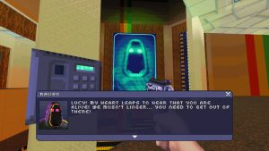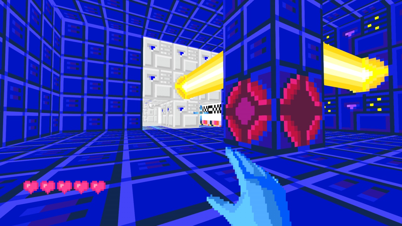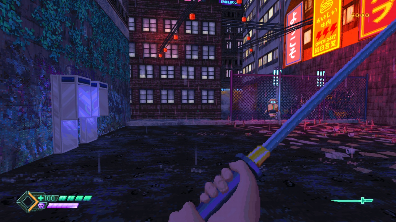 Beyond Sunset also channels System Shock with its many computer terminals. Most of the time, these are used to read emails that reveal the story, open locked gates, or give a peek into security cameras. But in certain cases, you’ll need to dive into cyberspace in order to hit some virtual switch. Here, the visuals give way to colorful pixelated blockiness, and mechanics totally change, with the main goal being to solve puzzles by guiding laser beams. You’ll still need to deal with enemies though, though you can only take five hits before being booted out, and your method of attack is far less powerful than in the “real” world. It’s certainly a change of pace from the main game, even if rotating lasers isn’t quite as exciting compared to dismembering yakuza dudes.