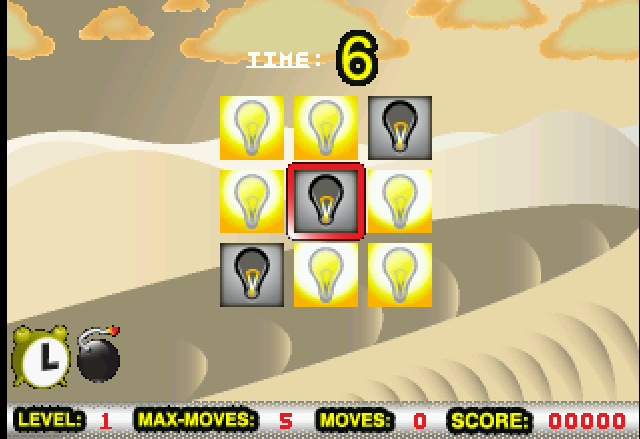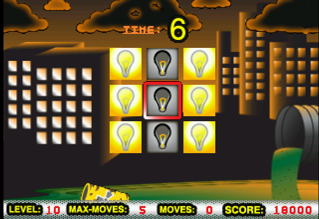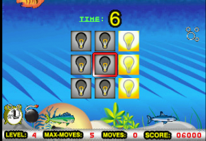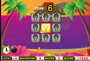 There are four stages in Black Out!, each one hosting ten rounds to complete and each light bulb grid pattern increases in complexity, which they will prove to be headache-inducing if you don’t know the correct pattern to complete the round. Depending on your performance, you win points that are later totaled up at the end of each stage. Strangely enough, completing a round with only two moves does not give you points whatsoever, which makes you wonder if the developers ever thought about giving players capable of completing rounds with two moves a reward or is a glitch in the game that went unseen.