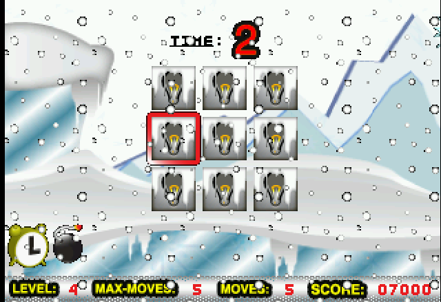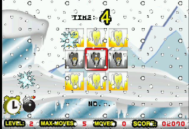 Power-ups are given to you by solving a number of rounds without failing in a row and quickly, which are either a clock that freezes time to give you a brief breathing room to complete a pattern without time being the main issue or a bomb that automatically clears the light bulb pattern by pressing 1 or 3 on the Jaguar’s numeric keypad. Both items will be extremely useful when playing on the highest difficulty level. Finishing the game on the Hard difficulty unlocks an extra stage in the main menu, comprised of light bulb grid patterns previously seen at the main game so if you wrote down each pattern during rounds, they’ll prove to be useful during this extra stage.