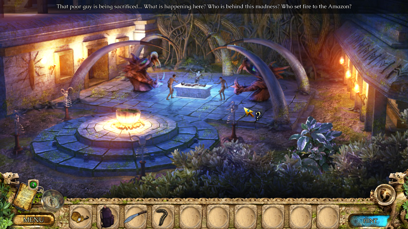 Black Rainbow starts simply enough, as we see an African tribe in the middle of a human sacrifice and then the smoke monster from Lost possesses one dude. Fire then falls from the sky as our heroine, white woman explorer Helen, gathers her things and escapes her now on fire jungle hut. Some puzzles solved and traveling around eventually leads us to learn that she is the chosen one and has to stop the dark ones, which do not have the power to read and destroy the minds of others but can possess people. She saves the world by just doing random crap literally anybody with a functioning brain could do as various characters she meet praise her for being the chosen one, those people including….hang on, got a list here…