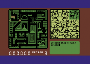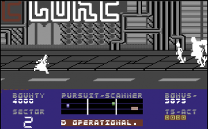 We hear a decent C64 rendition of the pulsing “Blade Runner: End Titles” track from the film as the game starts with an overhead map. Detailed with tight nooks and crannies straight out of the computer consoles of Escape From New York, it’s a bit of a struggle to squeeze through the tight alleyways as you search for the nearest Replicant, er, Replidroid.