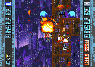 The soundtrack is a major highlight. Tsukumo Hyakutaro serves up a blazing set of synth-rock jams that confirm his status as a worthy successor to Toshiharu Yamanishi. Four months after Blast Wind released, Technosoft published the soundtrack as Reincarnation, the seventh volume of their “Game Music Collection” series. The album is absolutely worth listening to on its own. Actually, a few spins in the CD player are almost required because Blast Wind suffers from the same audio leveling woes that crippled Hyper Duel. Hyakutaro’s blitzkrieg shines through during the boss fights, but explosions constantly drown out the music in the normal stages. Highlight tracks to check out would be “Burning Heart” and “Justice Ray”. (The latter song kicks off the “Justice Ray Trilogy”, continued in Thunder Force V and Segagaga.) One tantalizing thought regarding Blast Wind‘s music is that the Hyakutaro soundtrack is almost certainly not the original score. If the game was destined for arcades in 1993, then Hyakutaro’s redbook OST must either be wholly new, or as ShimaPong claimed, an arrangement of the lost arcade chiptunes. Perhaps the original composer was Toshiharu Yamanishi – the title track especially resembles his style.