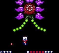 BM:EB adds a mandatory reason for you to go in dungeons other than the boss’s. Each area’s boss dungeon door is locked, and in order to gain access to them, you have to find a key (or later in the game, two keys) hidden in one of the other dungeons. Therefore, it’s not enough just to find the boss’s lair this time around. You still earn extra parts for you tank after defeating bosses, but now you can also collect optional parts for both Sophia and Jason. The extra parts are pretty helpful and make it a little easier to get through this pretty challenging game. As with Blaster Master 2, but not quite to that extent, you have to spend more time in the overworld as Jason, but you acquire an overworld gun upgrade for him later that makes him less wimpy.