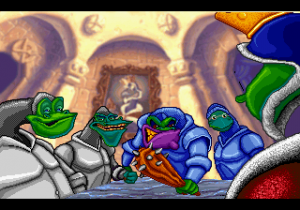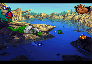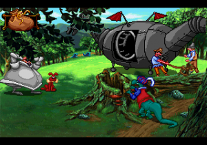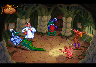 There are quite a few differences between the game and the cartoon, which is probably for the better. The character artwork in the game is quite a bit different and much improved over the somewhat hasty designs of the cartoon. Rather than taking footage from the cartoons, the artists redrew everything in pixel artwork in the style of the LucasArts games. The VGA quality graphics are low res compared to PC adventures games of 1996, but it’s still quality 2D artwork, which means it’s aged much better than 95% of the PlayStation’s library.