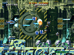 The mix of traditional sprite artwork with pre-rendered elements usually ages poorly, and most of Blazing Star‘s bosses are disappointingly a little rough around the edges compared to the more detailed alien monstrosities Kaoru confronted in Pulstar. Fortunately, everything else about the game’s presentation is great and holds up as well today as it did in 1998 thanks to some beautiful background artwork and a great soundtrack.