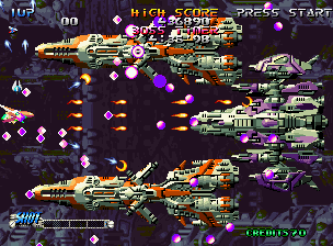 Her ship will seem overly powerful at first. It has both high speed and some impressive firepower. Its drawback will quickly become apparent though, the ship’s weapons cannot be powered up. What it starts with is all the player has to work with for the entire game. Experts can exploit its charge attacks to score big points.