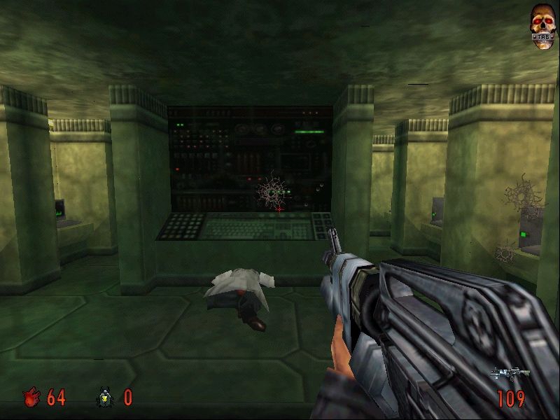Making a visually and atmospherically distinct horror-action game set in a dystopian future shouldn’t be this difficult. Imagine if Blood II had beaten Bioshock to the punch with a retro-future setting, with steampunk cities in the sky rather than miserably dull corporate cubicles. By using marketing and focus groups instead of creativity, Monolith managed to strip away everything that made Blood memorable, replacing it with a formless sleekness that better fits the lazy vision of today’s shooters. Maybe they were just preparing us for the monotony of the F.E.A.R. series. Swish!