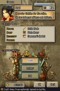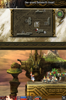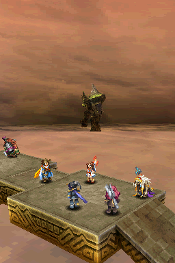 In the game, the Behemoths are rendered fully in 3D. Perhaps aren’t as big in game as the lore would make you believe – not quite enough to hold a whole country full of people – but they’re still several magnitudes bigger than your player characters and look impressive for a Nintendo DS game. All other visual elements, including characters and normal enemies, are represented with sprites which are adequate, however, there are just a few enemy designs, and they are reused throughout the game. The stages are just floating platforms and there’s virtually no change between the different missions to them, making them the weakest part of the presentation. The music by Naoshi Mizuta (Final Fantasy XI, Final Fantasy: The 4 Heroes of Light) isn’t remarkable, but it won’t get in the way either.