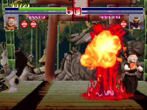 The only new character in Blood Warrior is a living statue whose limbs expand to comedic effect while fighting. Unfortunately, his special moves are very weak, and his short attack range makes him more of a joke character than an actual contender. He can be fun to use at first, but is disappointing as the game’s only newcomer.