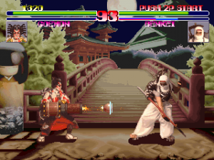 Another improvement is the new music, changing from mostly generic “traditional” songs to a generic heavy metal soundtrack. It complements the game’s more graphic violence effectively compared to Shogun Warriors‘ good but less distinct tracks. Both soundtracks were composed by Tatsuya Watanabe, but it is distinct from the music he had created for earlier Kaneko games like Heavy Unit and Air Buster.