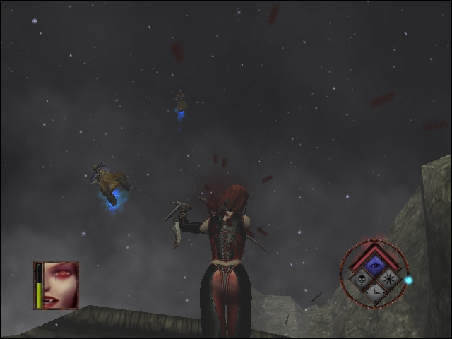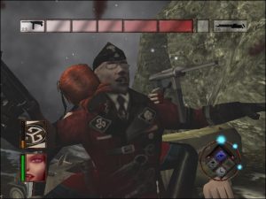 Suffice to say that the happenings on screen are depicted ever so gruesome. BloodRayne inherits most of the physics features of the Nocturne engine, thus limbs and other body parts can and will get severed at almost any joint of the character model, multiplying the intensity by the now more immediate perspective and the more manlike depiction of the Nazi soldiers as opposed to Nocturne’s Zombies and Werewolves, whose painful screams for help while Rayne is sucking them dry is almost stuff to haunt dreams. Wouldn’t it be for the sequel raising the gory bar even more, one would be quick to call BloodRayne one of the most violent games ever made.